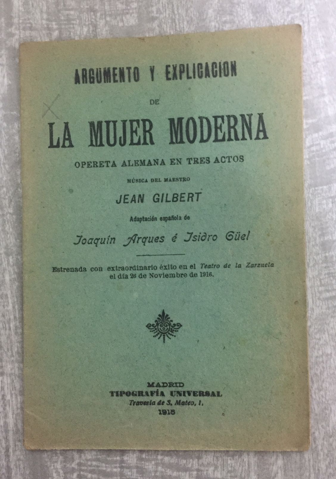 LA MUJER MODERNA. Opereta alemana en tres actos. Música del Maestro Jean Gilbert