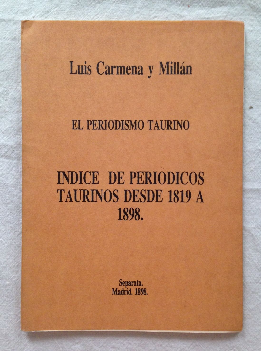 EL PERIODISMO TAURINO. Índice de periódicos taurinos desde 1819 a 1898. Separata