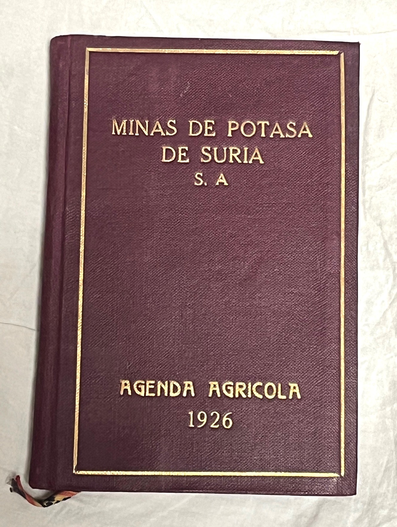 16x11, 320p, sello anterior poseedor, obsequio de Minas de Potasa de Suria. Tela. Buen estado.