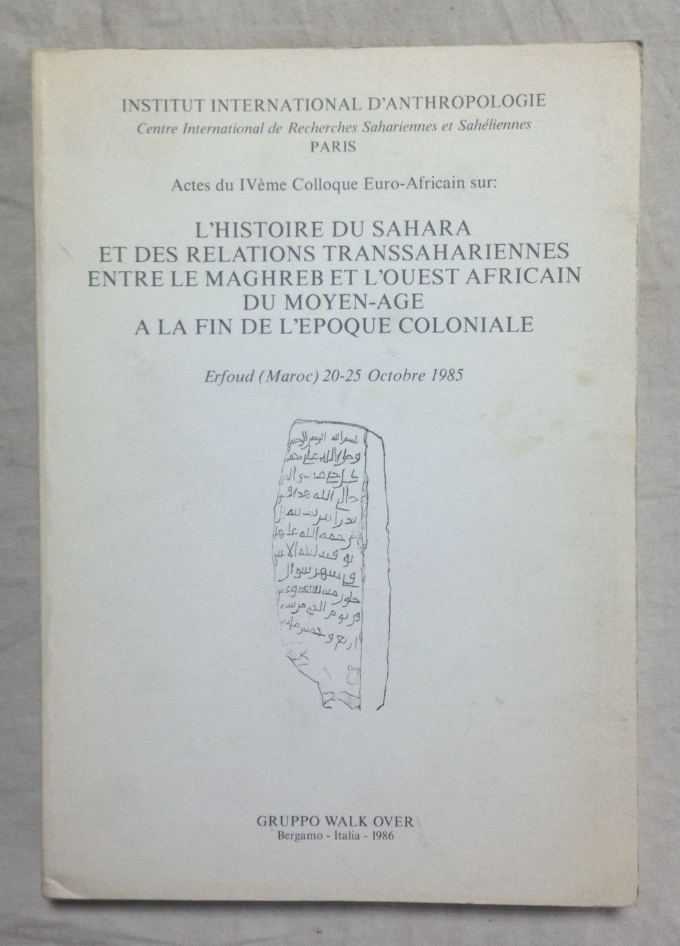 L'HISTOIRE DU SAHARA ET DES RELATIONS TRANSSAHARIENNES ENTRE LE MAGHREB ET L'OUEST AFRICAIN DU MOYEN-AGE A LA FIN DE L'EPOQUE COLONIALE. Actes du IVème Colloque Euro-Africain