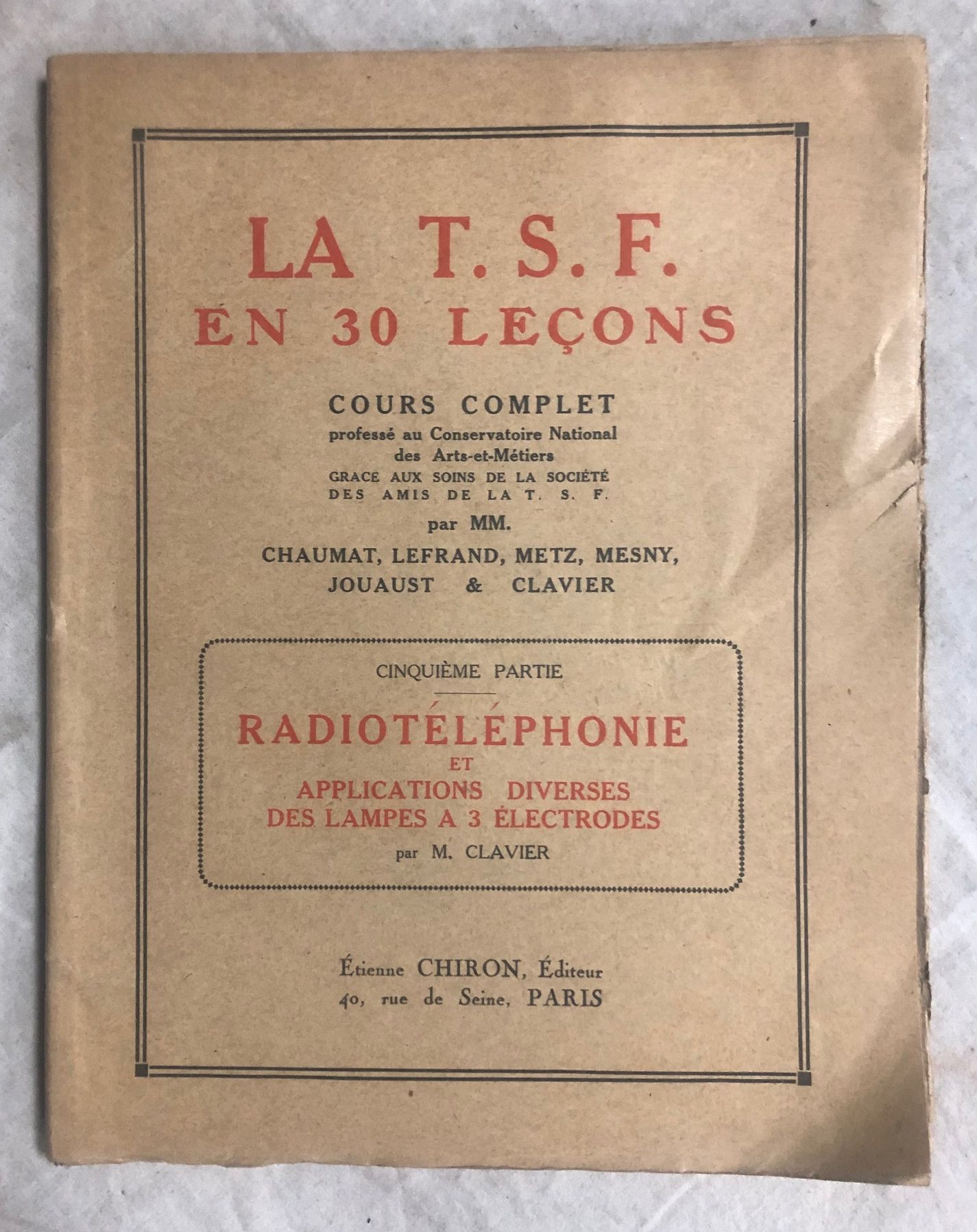 LA T.S.F. EN 30 LEÇONS. RADIOTELEPHONIE ET APPLICATIONS DIVERSES DES LAMPES A 3 ELECTRODES