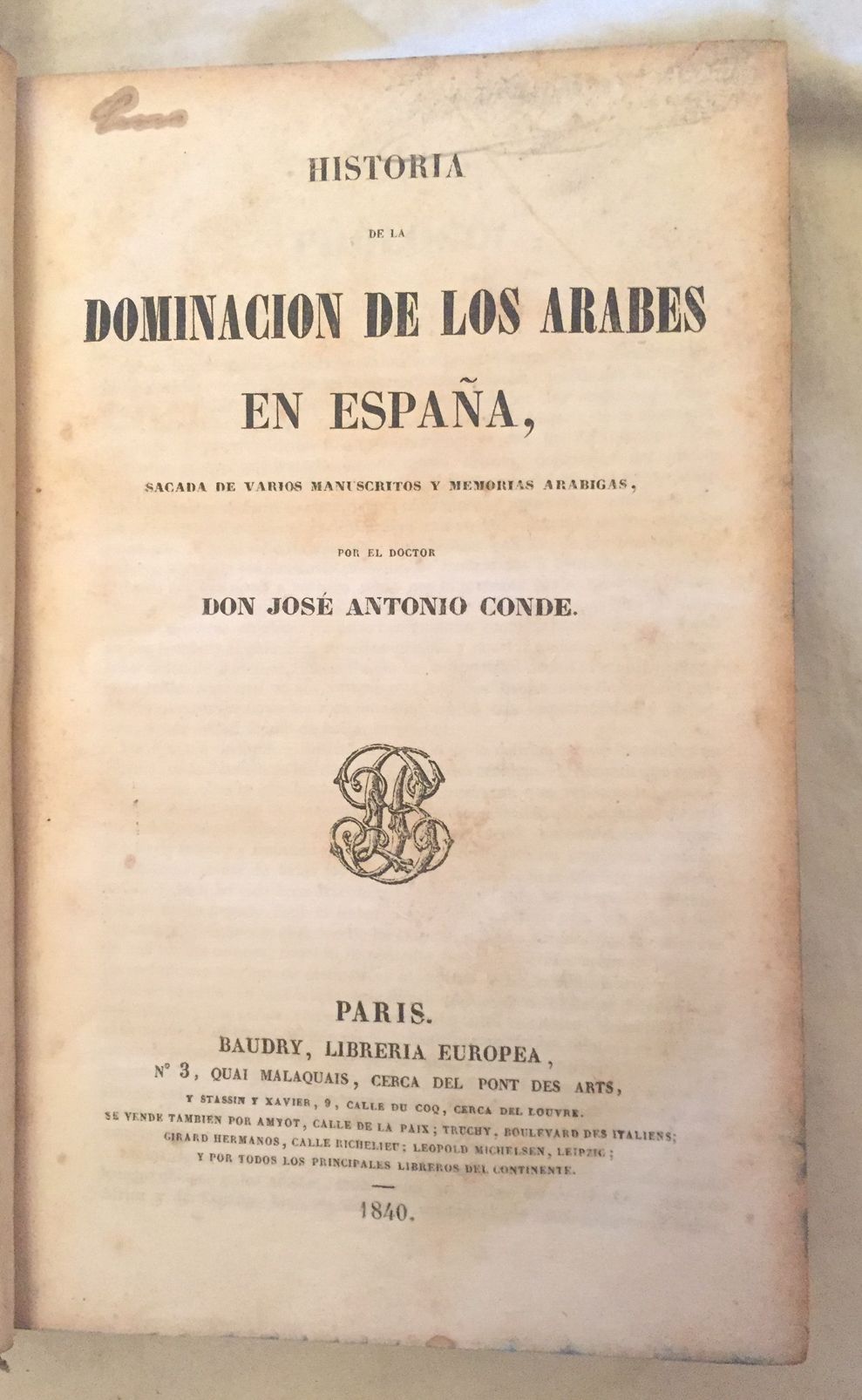 HISTORIA DE LA DOMINACION DE LOS ARABES EN ESPAÑA, sacada de varios manuscritos y memorias arabigas