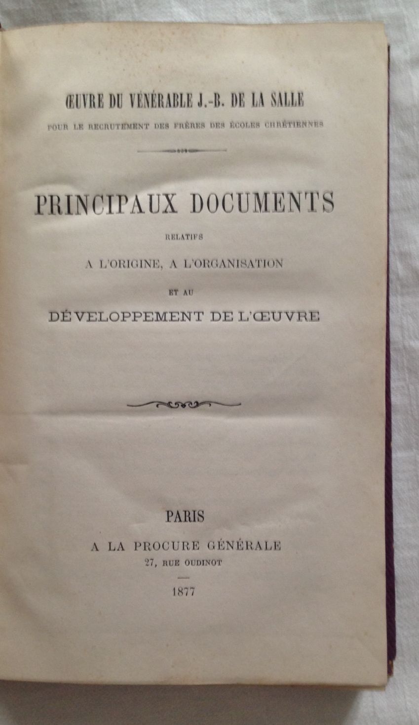 PRINCIPAUX DOCUMENTS RELATIFS A L'ORIGINE , A L'ORGANISATION ET AU DÉVELOPPEMENT DE L'OEUVRE