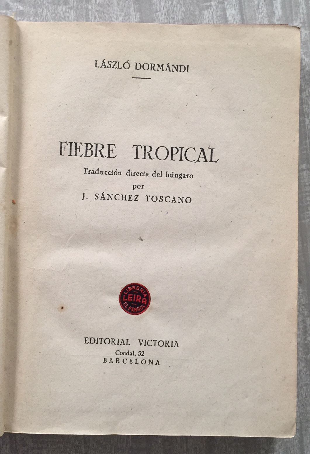 FIEBRE TROPICAL. Traducción directa del húngaro por J. Sánchez Toscano