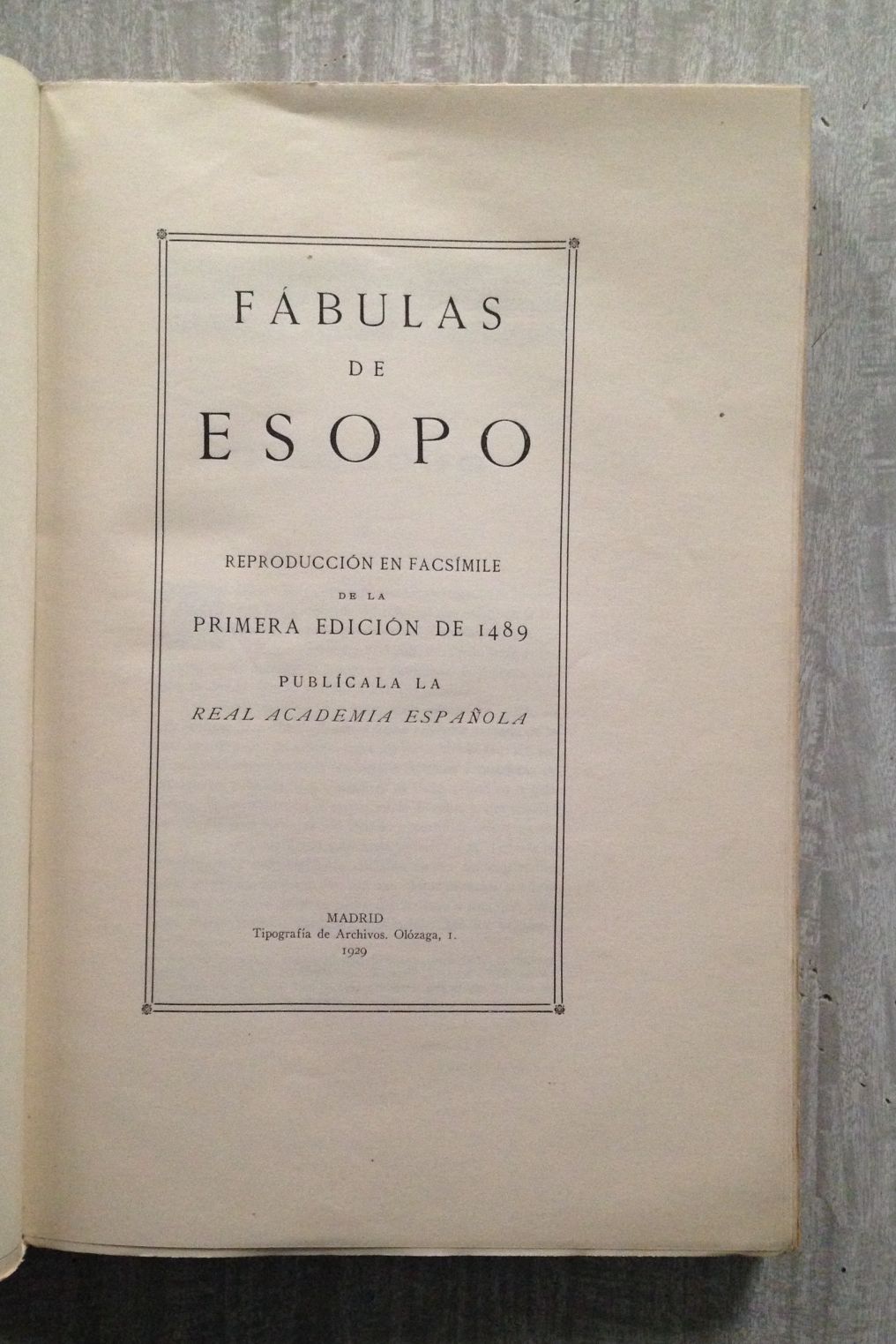 FABULAS. Reproducción en Facsímile de la primera edición de 1489. Publícala la Real Academia Española