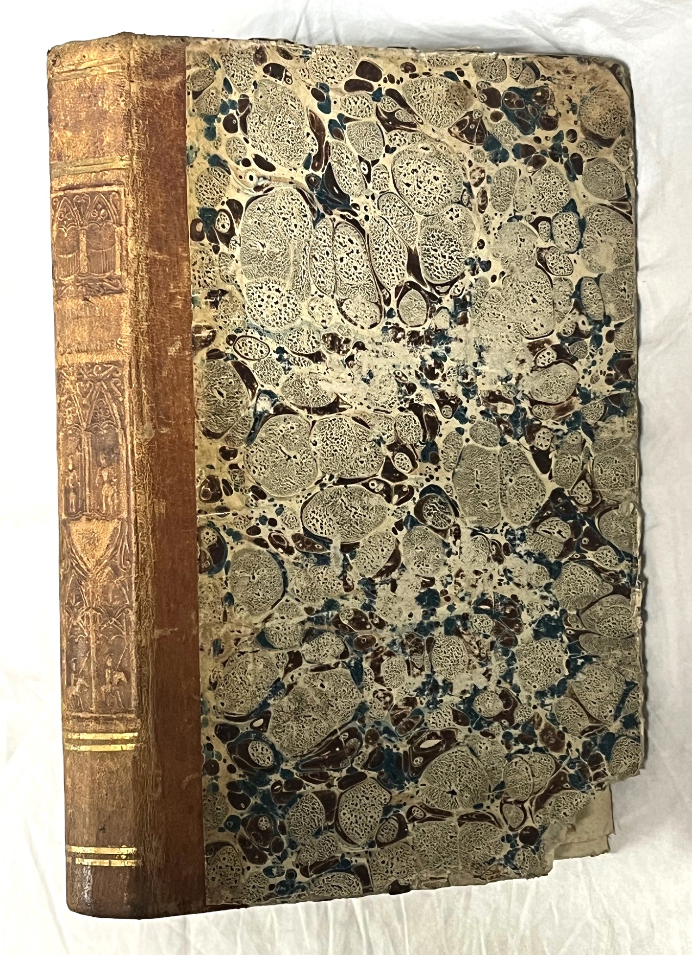 24x14, XVIIp, 1h, 382p, 7 láminas desplegables. Holandesa piel-cartoné fatigada (rotura de esquina inferior), cortes pintados. Aceptable estado.