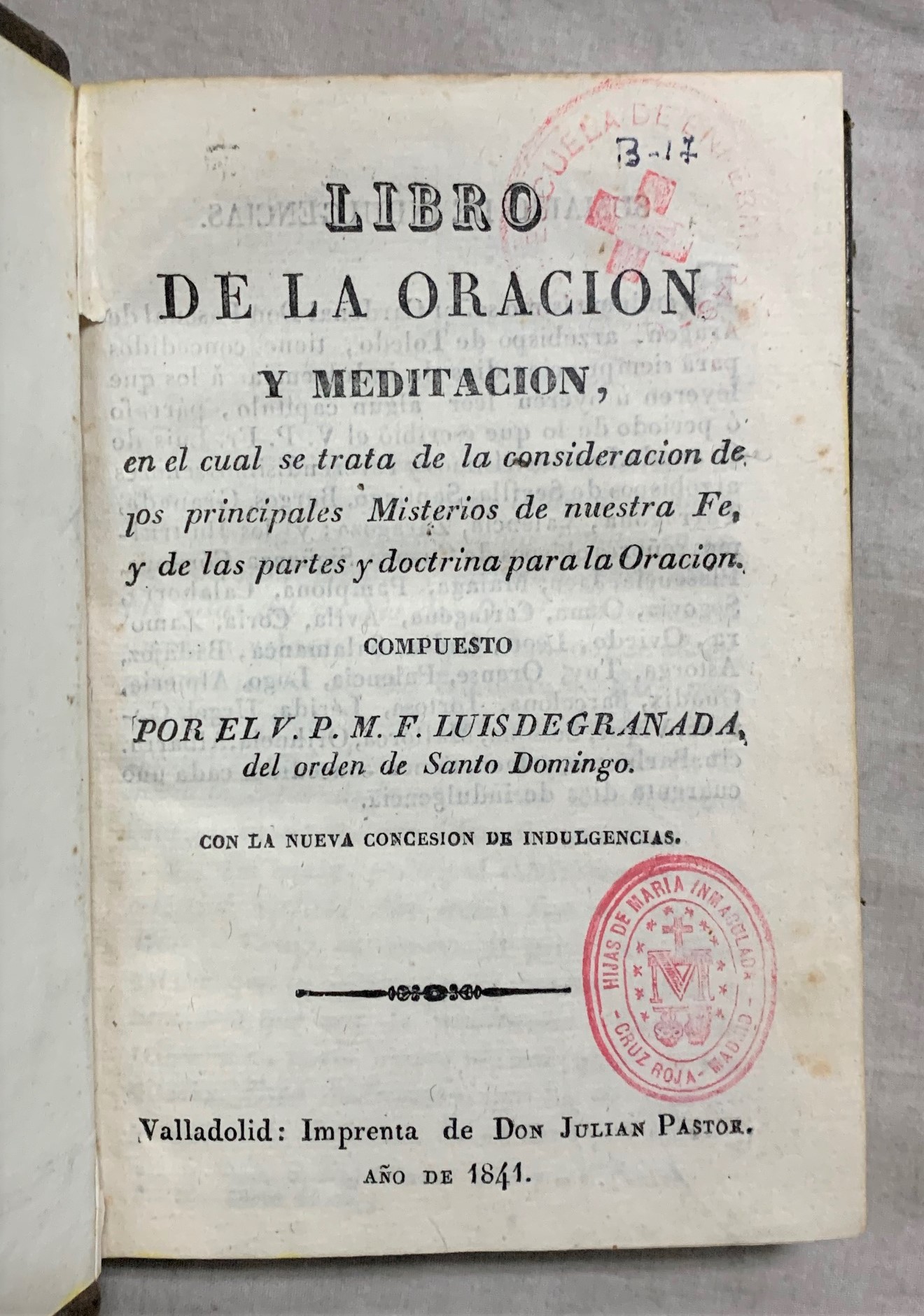 Imp. de Don Julián Pastor, 1841, Valladolir