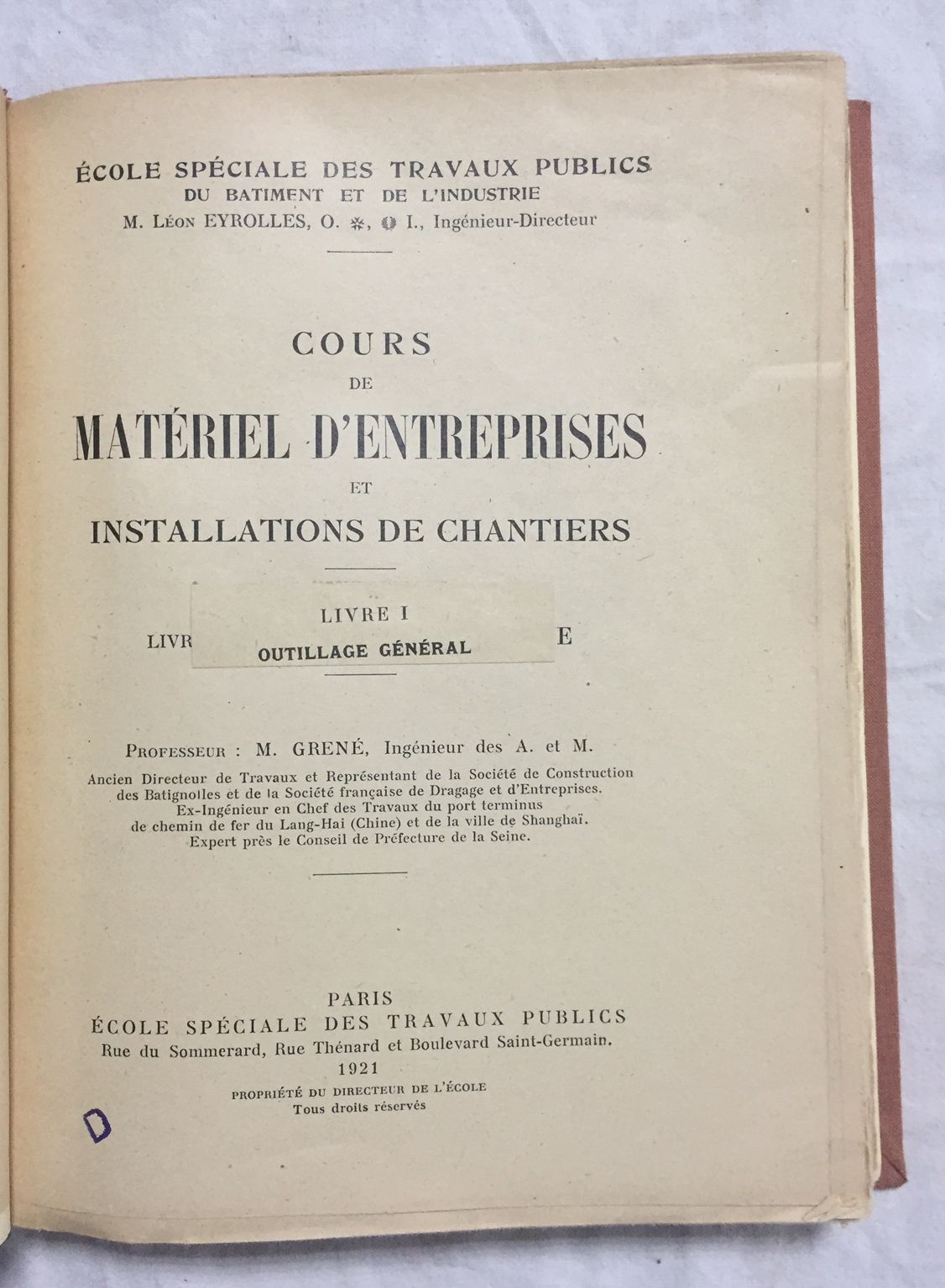 Ecole Spéciale des Travaux Publics, 1921, Paris