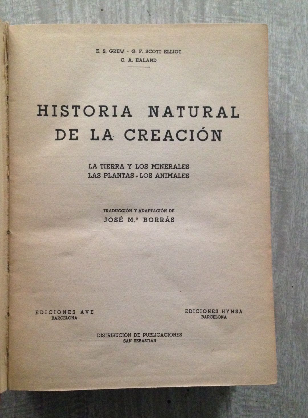 HISTORIA NATURAL DE LA CREACION. La tierra y los minerales. Las plantas - Los animales. Traducción y adaptación de José Mª Borrás