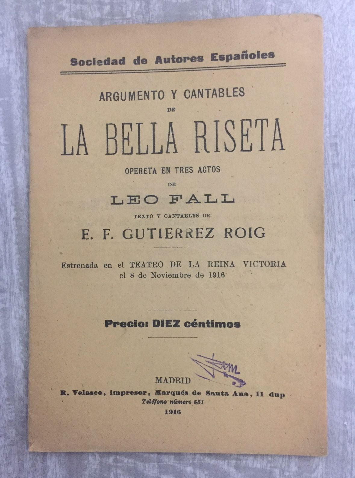 R. Velasco, 1916, Madrid