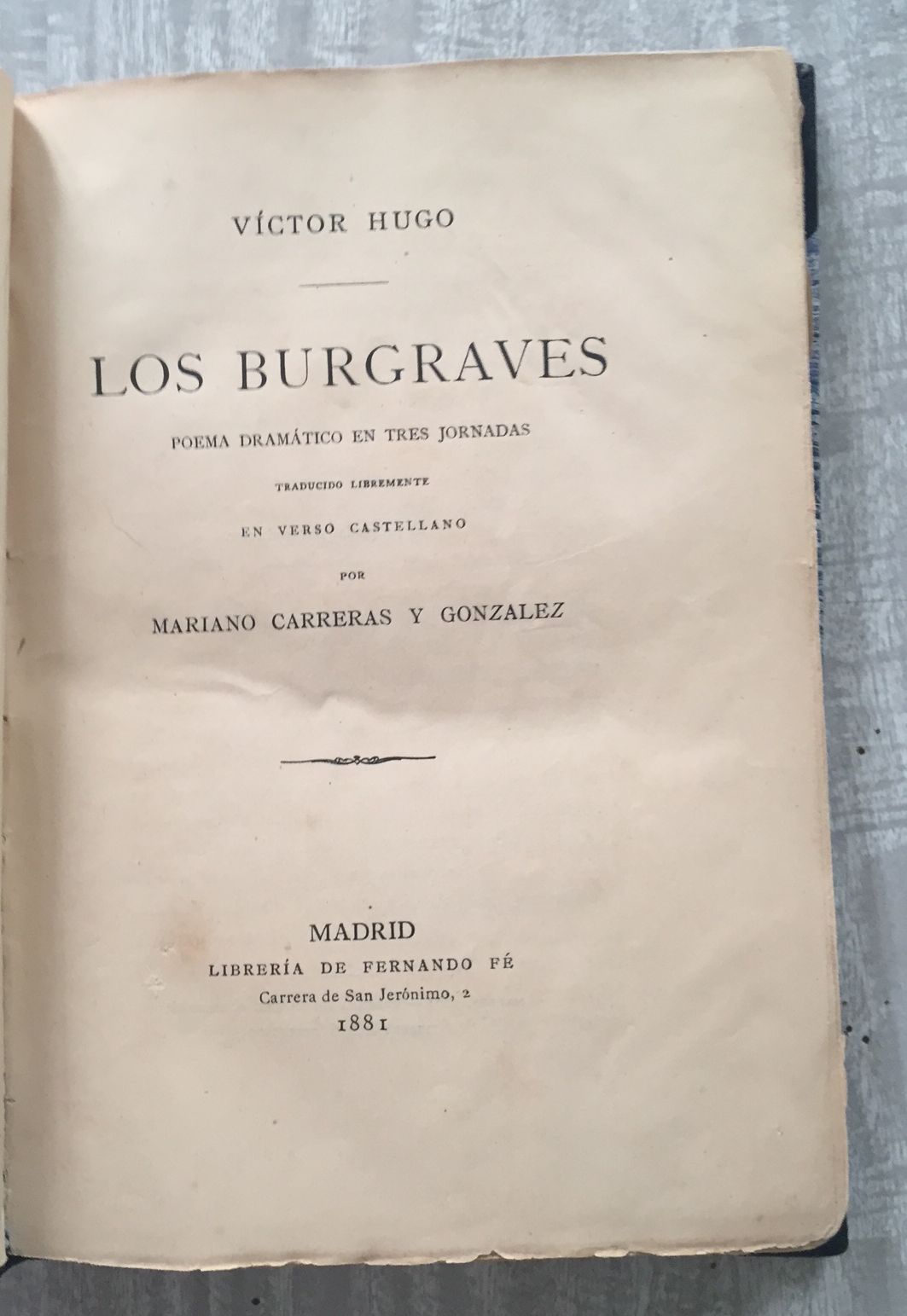 LOS BURGRAVES. Poema dramático en tres jornadas. Traducido libremente en verso castellano en verso castellano por Mariano Carreras y González