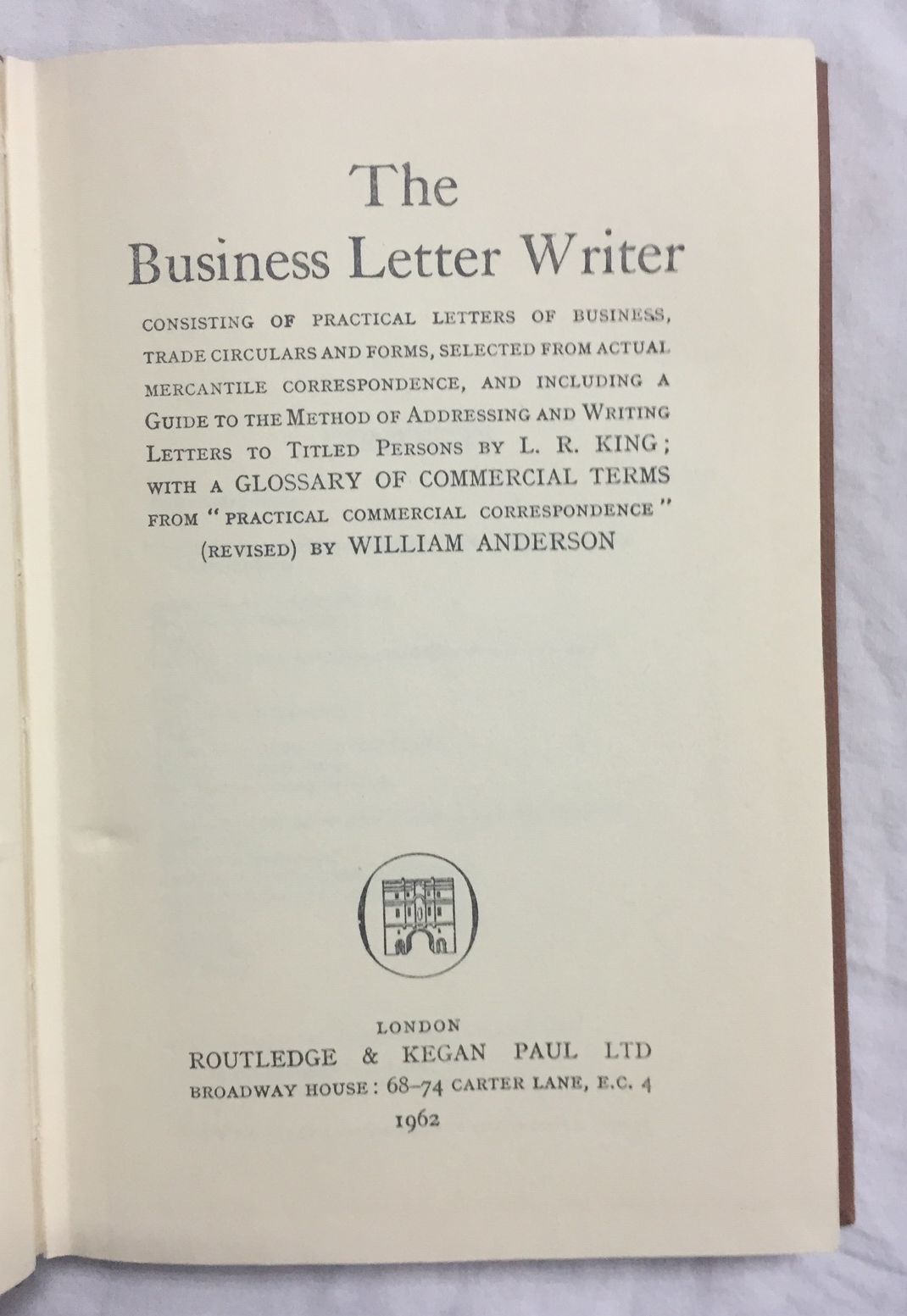Routledge & Kegan, 1962, London