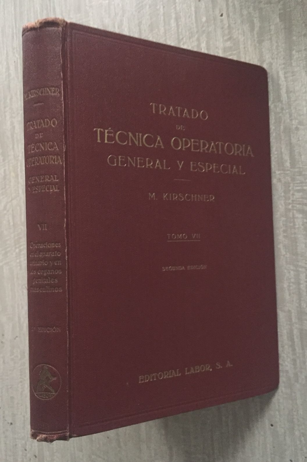 25x17, XIp, 377p, 1h, 292 ilustraciones en negro y en color, dedicatoria anterior poseedor. Tela editorial (leve rozadura en borde superior del lomo). Buen estado. Este ejemplar es el tomo VII de la obra "Tratado de técnica operatoria general y especial".