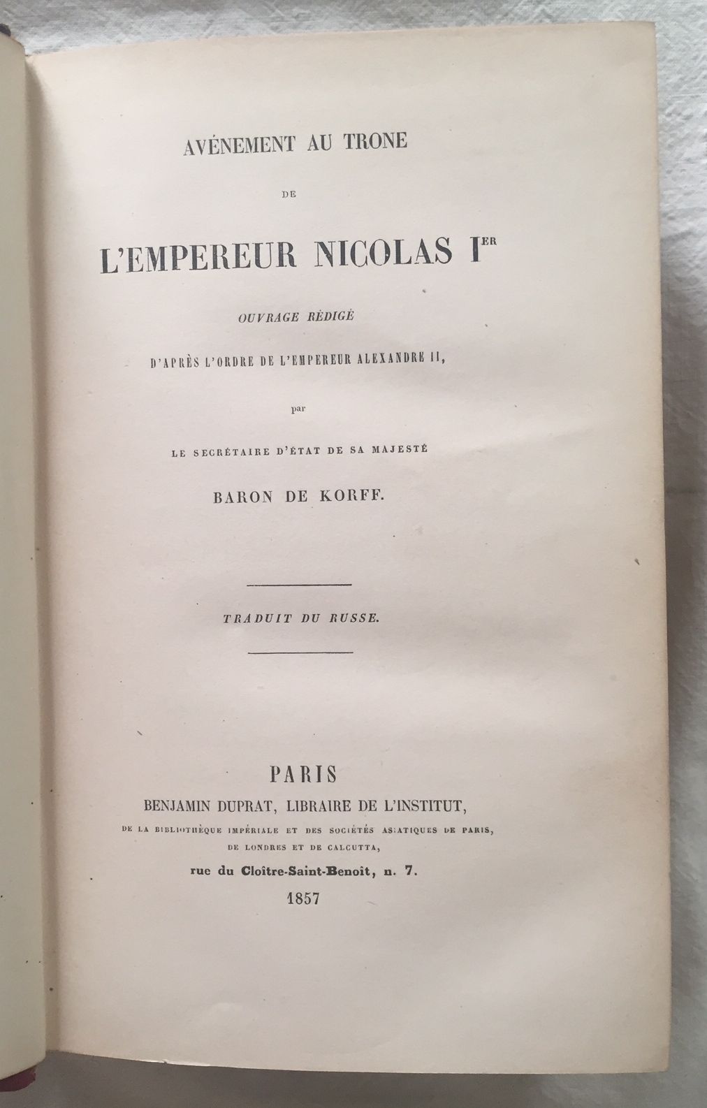 AVÉNEMENT AU TRONE DE L'EMPEREUR NICOLAS Ier. Ouvrage rédigé d'aprês l'ordre de l'empereur Alexandre II...