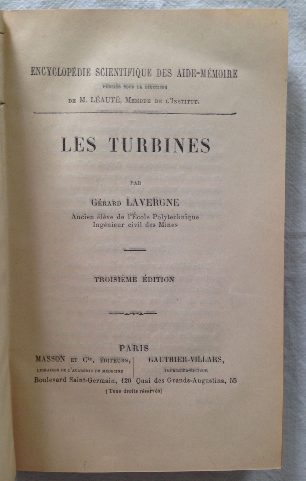 Masson et Cie - Gauthier-Villars. Encyclopédie Scientifique des Aide-Mémoire, s.f., Paris