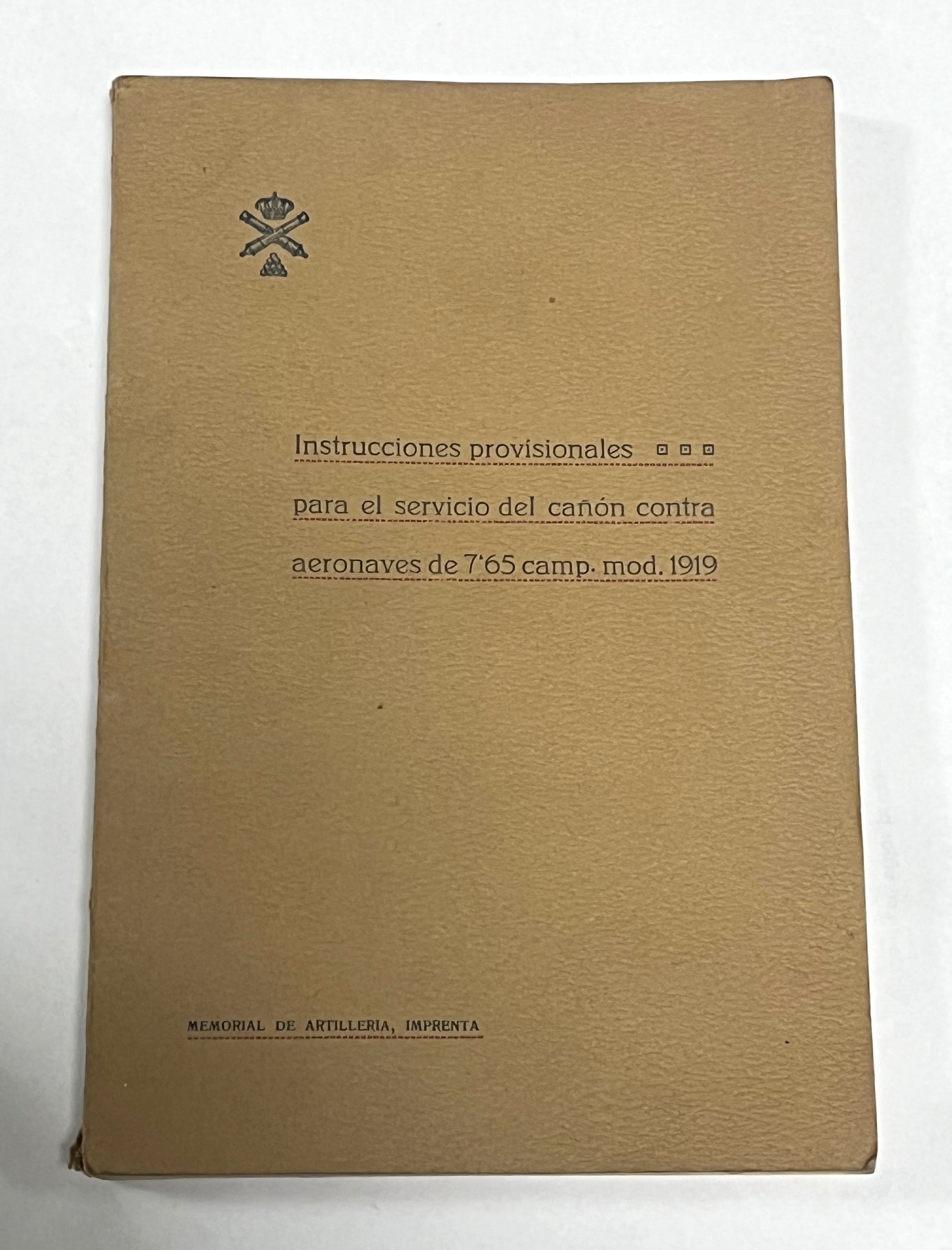 INSTRUCCIONES PROVISIONALES PARA EL SERVICIO DEL CAÑÓN CONTRA AERONAVES de 7,65 de Campaña Mod. 1919
