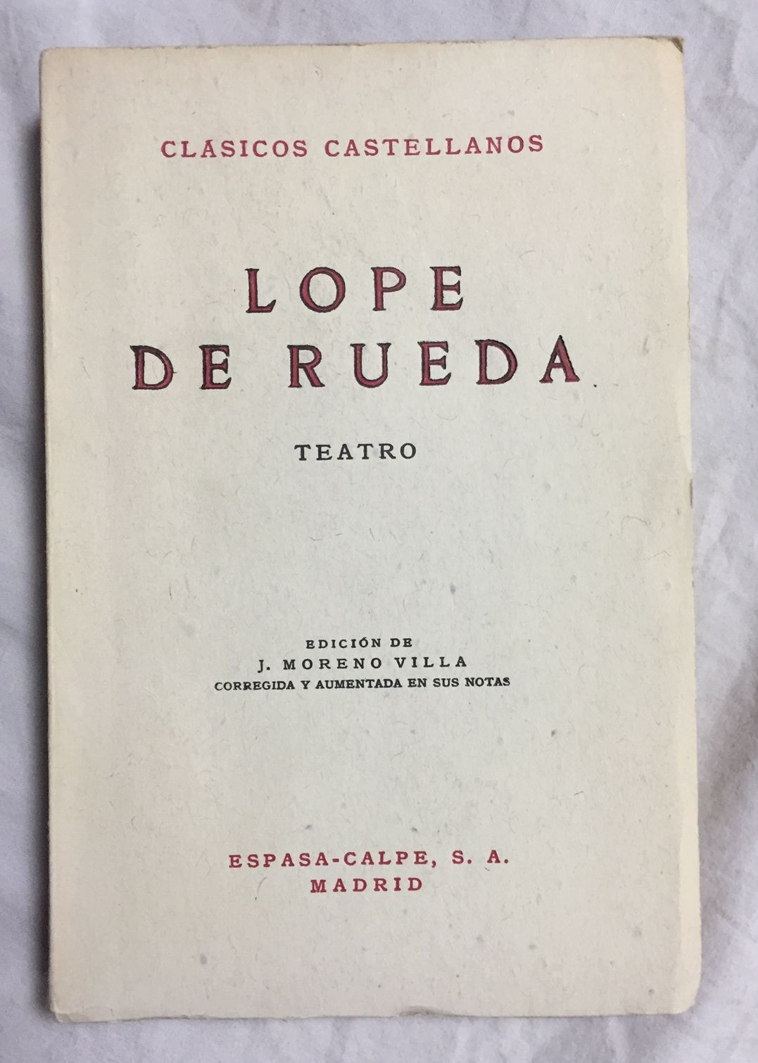 TEATRO. Colección Clásicos Castellanos, nº 59. Edición de J. Moreno Villa corregida y aumentada en sus notas