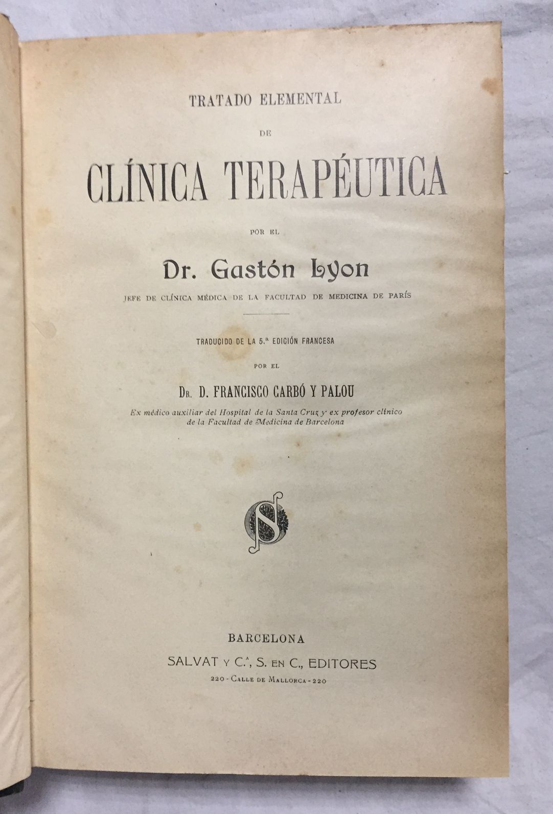 TRATADO ELEMENTAL DE CLINICA TERAPEUTICA. 2 Vols.