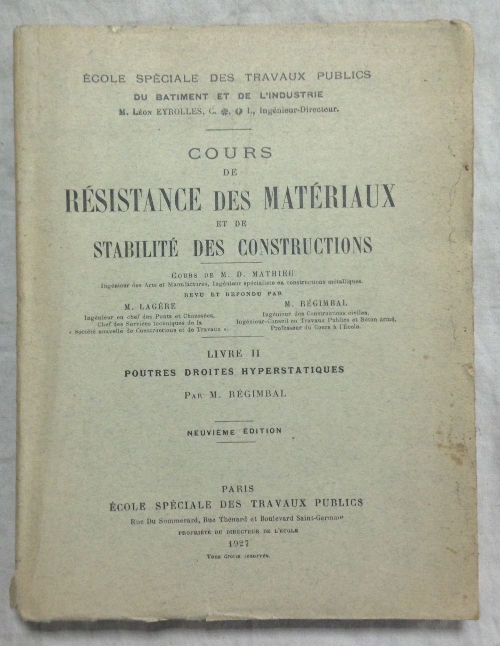 Ecole Speciale des Travaux Publics, 1927, Paris