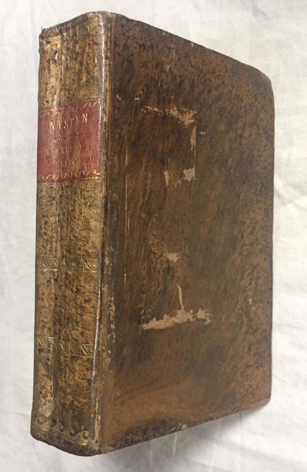 20'5x12'5, XIIp, 628p, 1h, leve rastro de polilla en márgenes de las primeras y últimas hojas. Plena piel, tejuelo y dorados en lomo. Buen estado.