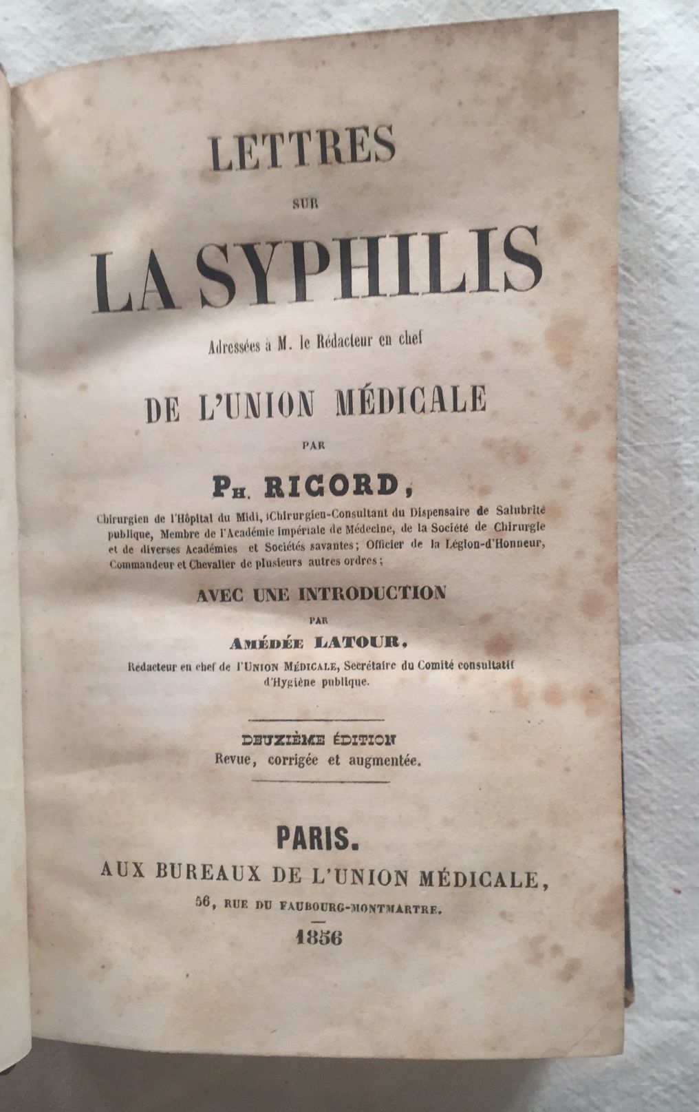 Aux Bureaux de L'Union Médicale, 1856, Paris