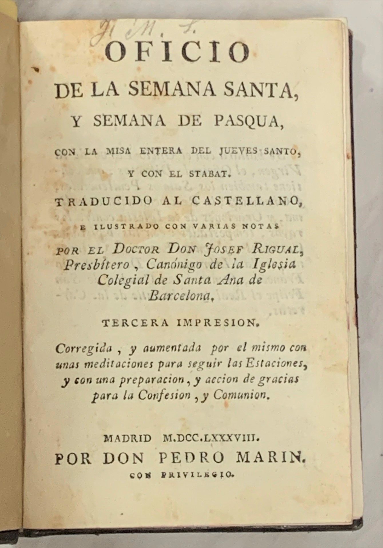 OFICIO DE LA SEMANA SANTA, Y SEMANA DE PASQUA, con la misa entera del Jueves Santo, y con el Stabat.