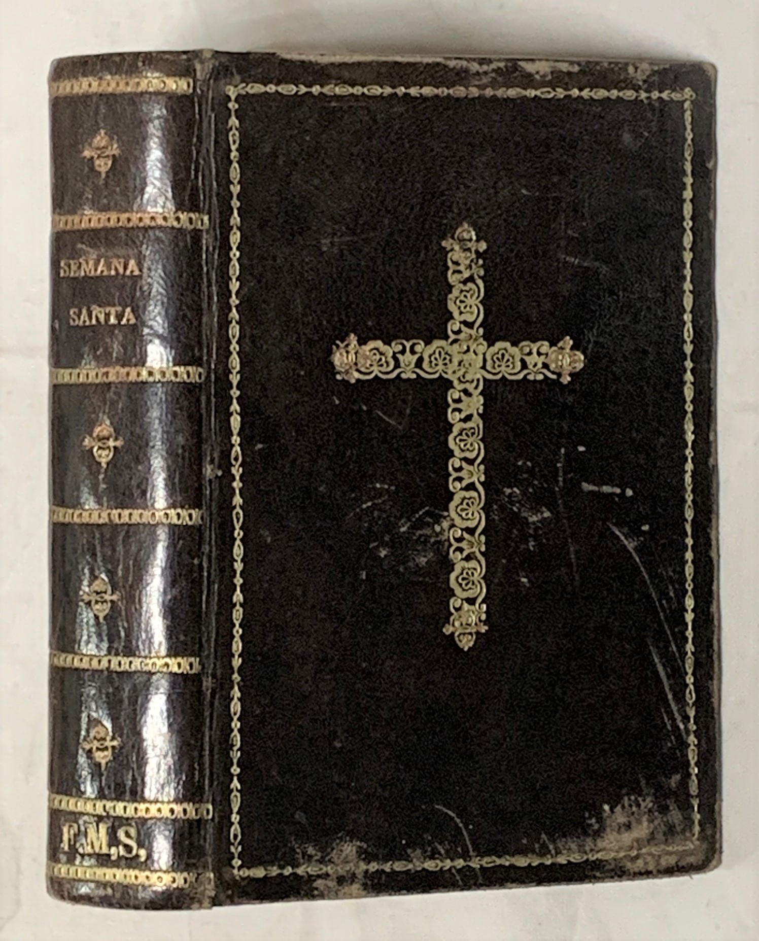 15x10, 568p, láminas. Plena piel, rueda y cruz dorada en planps, dorados en lomo, cortes pintados. Buen estado.