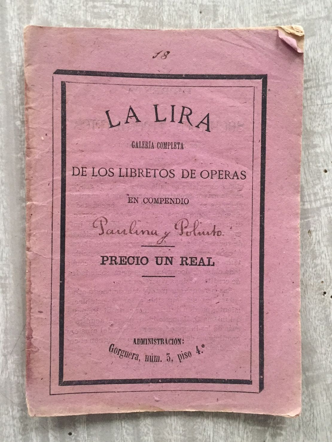 PAULINA Y POLIUTO O LOS MARTIRES. Opera en tres actos. Música del Maestro Donizetti. Libreto
