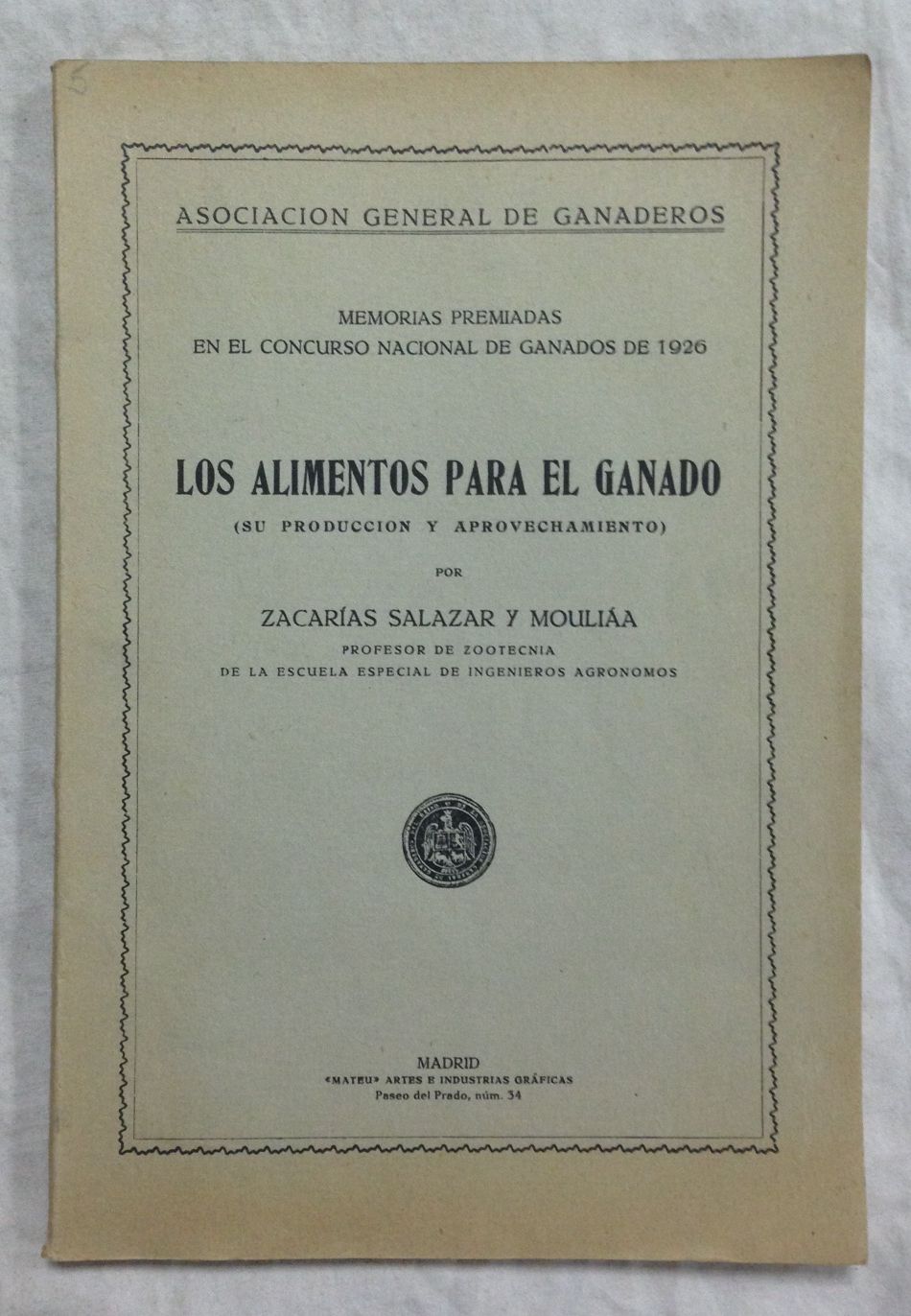 LOS ALIMENTOS PARA EL GANADO (Su producción y aprovechamiento). Memorias premiadas en el Concurso Nacional de Ganados de 1926