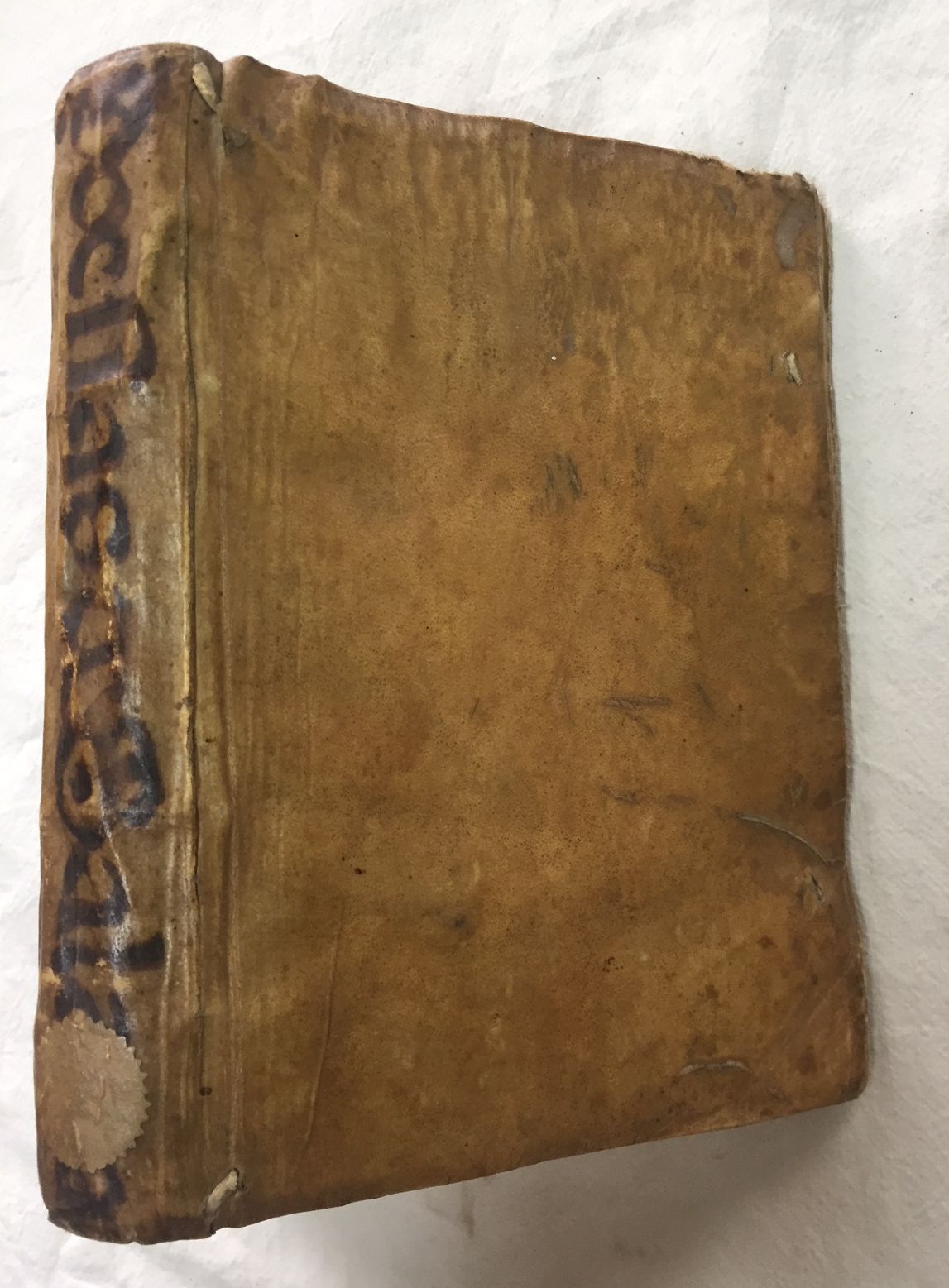 21x15, 14h. (contiene las Memorias para la vida de Luis de Salazar y Catálogo de sus obras impresas y manuscritas), 363p, 2h, leve rastro de polilla en margen del último tercio de la obra. Pergamino de época. Buen estado general.