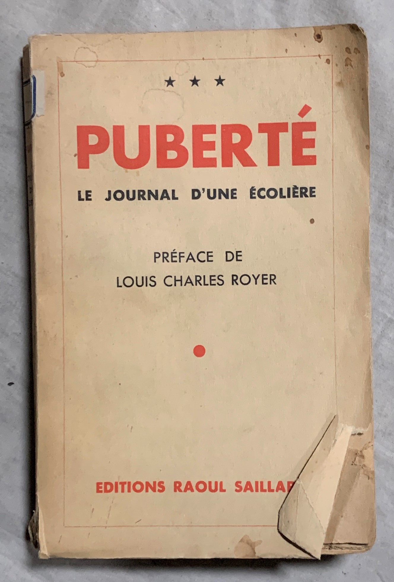 PUBERTÉ. Le journal d'une écolière. Préface de Louis Charles Royer