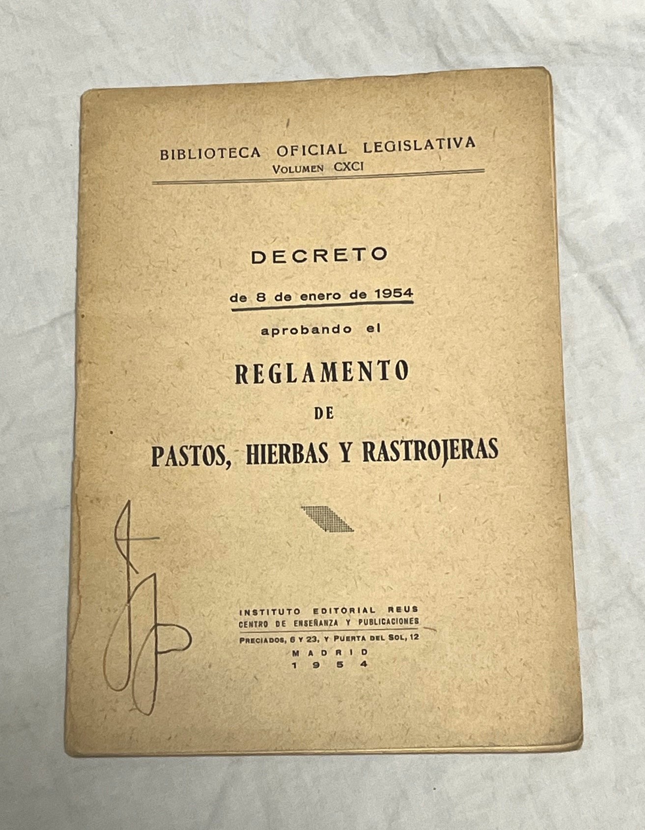 Instituto Editorial Reus - Biblioteca Oficial Legislativa. Volumen CXCI, 1954, Madrid