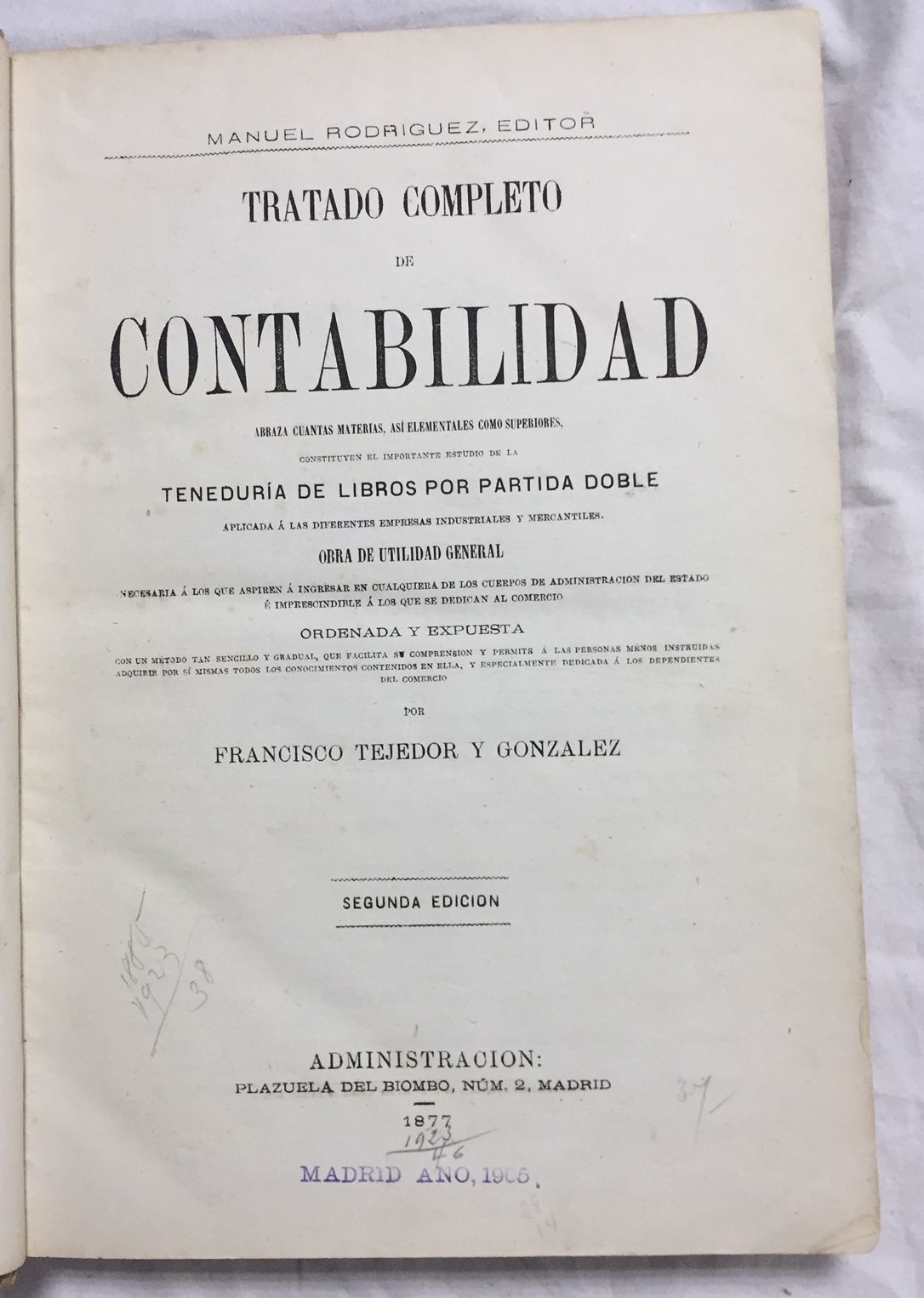 Manuel Rodríguez, Editor, 1877, Madrid