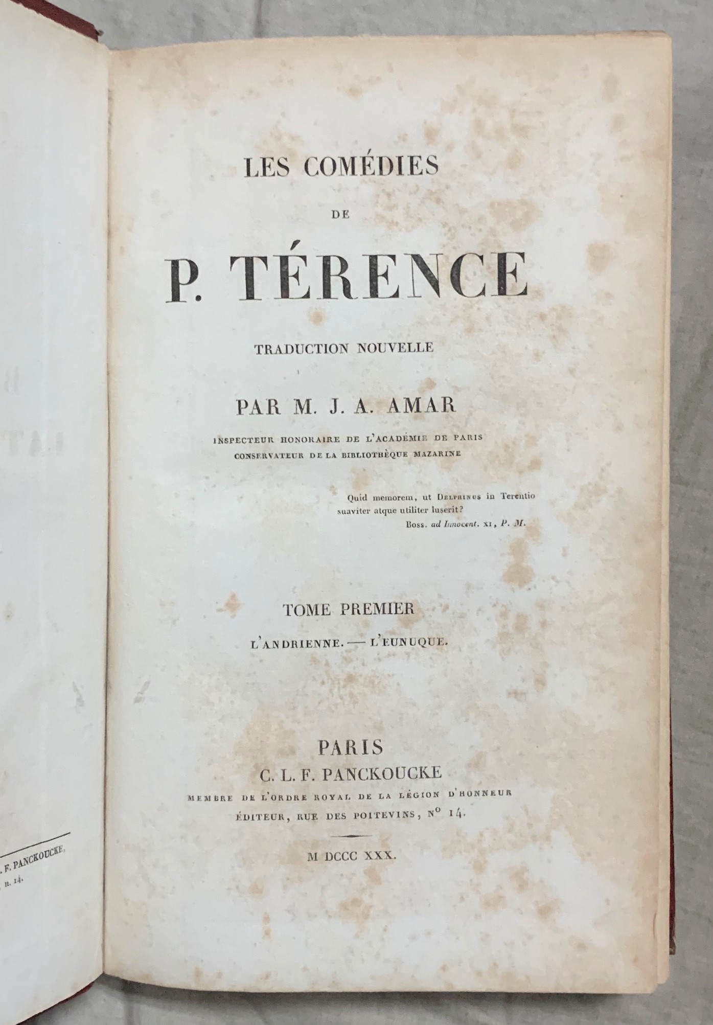 Panckoucke. Bibliotheque latine-francaise du traductions nouvelles des auteurs latins, 1830, Paris