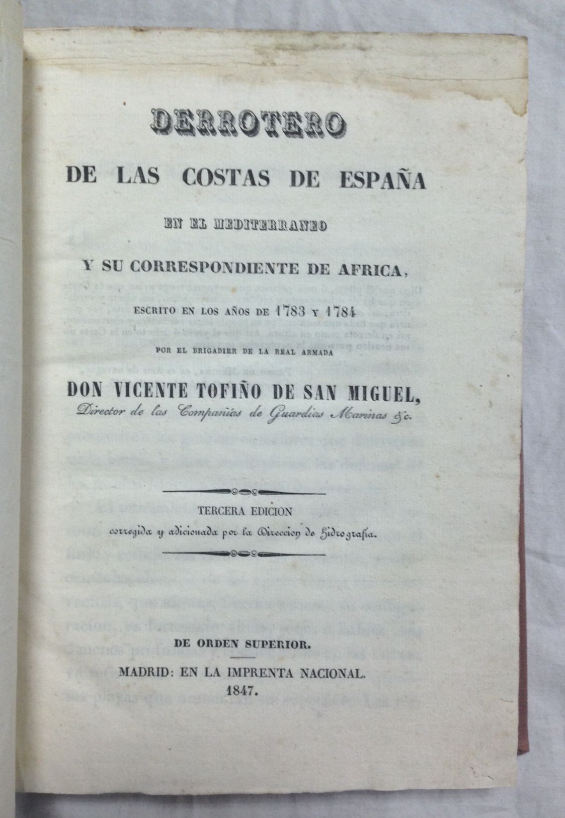 DERROTERO DE LAS COSTAS DE ESPAÑA en el Mediterráneo y su correspondiente de África, escrito en los años de 1783 y 1784 por el Brigadier de la Real Armada...Tercera edición, corregida y adicionada por la Dirección de Hidrografía