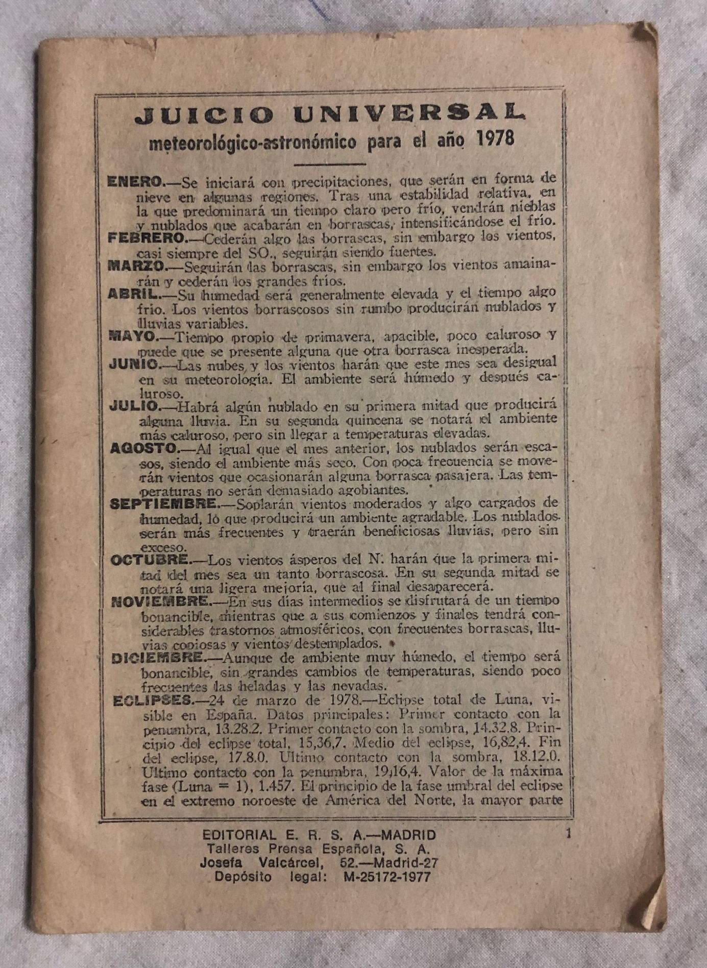 JUICIO UNIVERSAL METEOROLÓGICO-ASTRONÓMICO PARA EL AÑO 1978