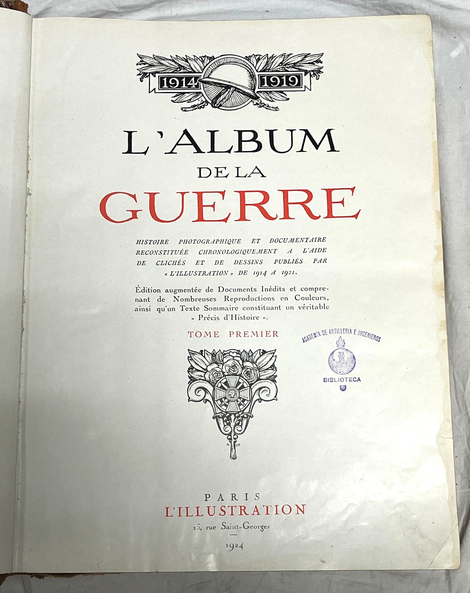 L'ALBUM DE LA GUERRE. Histoire photographique et documentaire reconstituée chronologiquement a l'aide de clichés et de dessins publiés par L'Illustration de 1914 a 1921. 2 Tomos