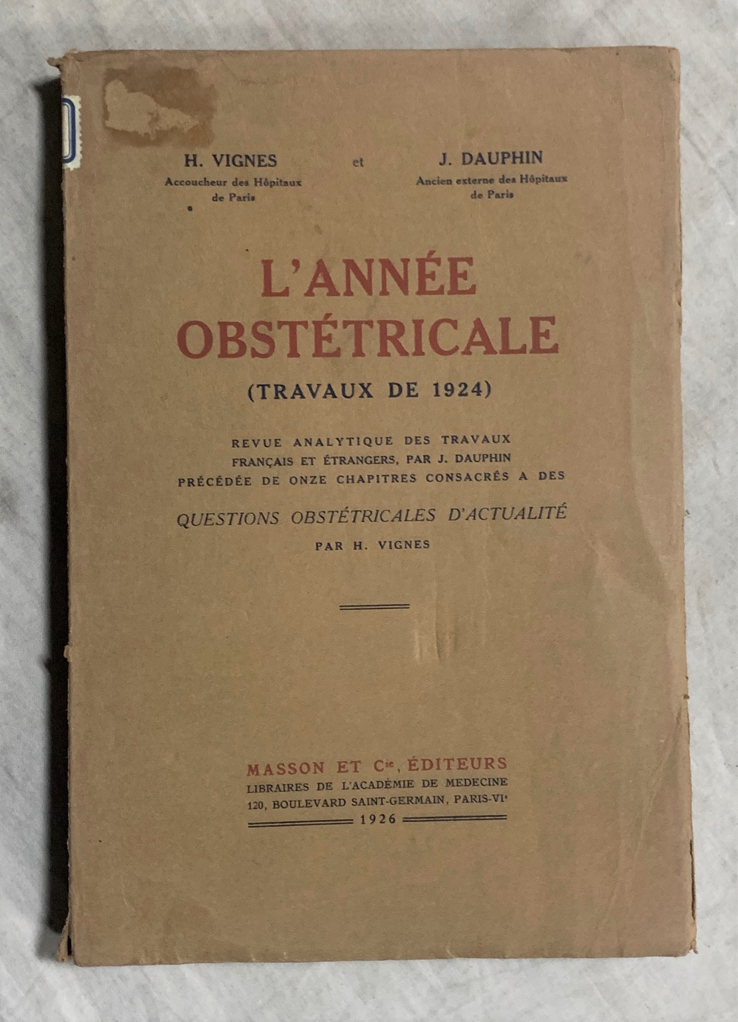 L'ANNÉE OBSTÉTRICALE (Travaux de 1924). Revue analytique des travaux français et étrangers, par J. Dauphin précédée de onze chapitres consacrés a des quiestions obstétricales d'actualité