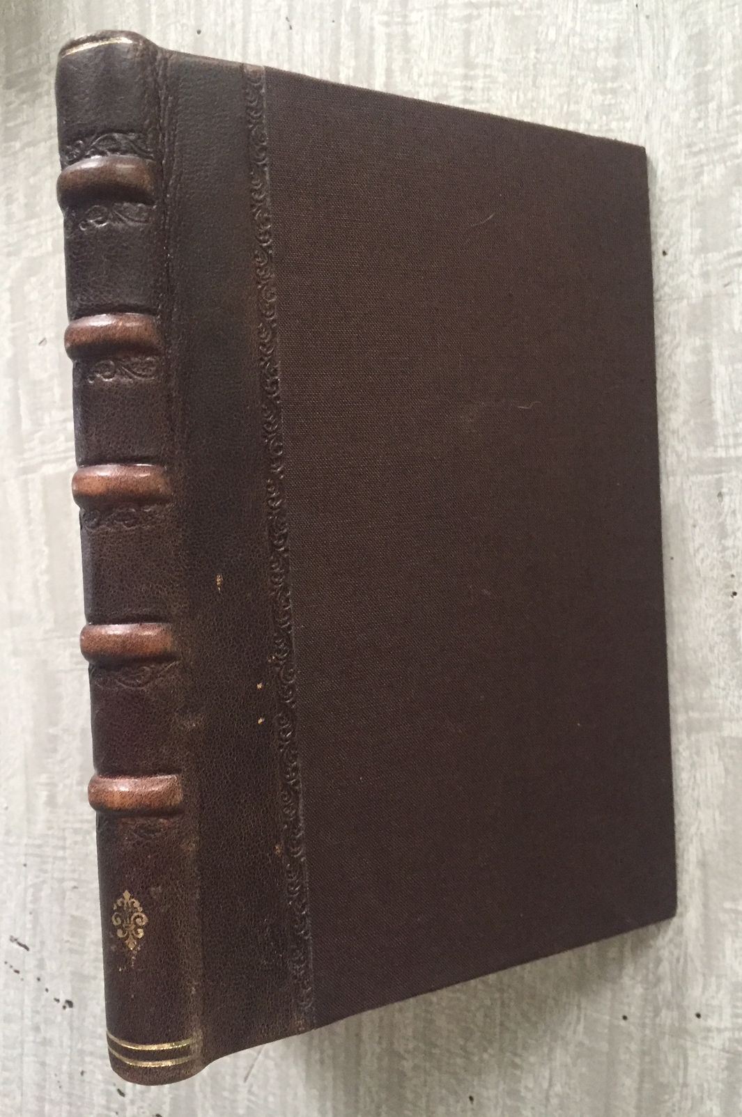 20x13'5, 95p. (portadilla desprendida), láminas y mapas desplegables. Encuadernado en media piel, ruedas gofradas en planos, nervios, gofrados y dorados en lomo, guardas artesanales pintados en acuarela. Muy buen estado.
