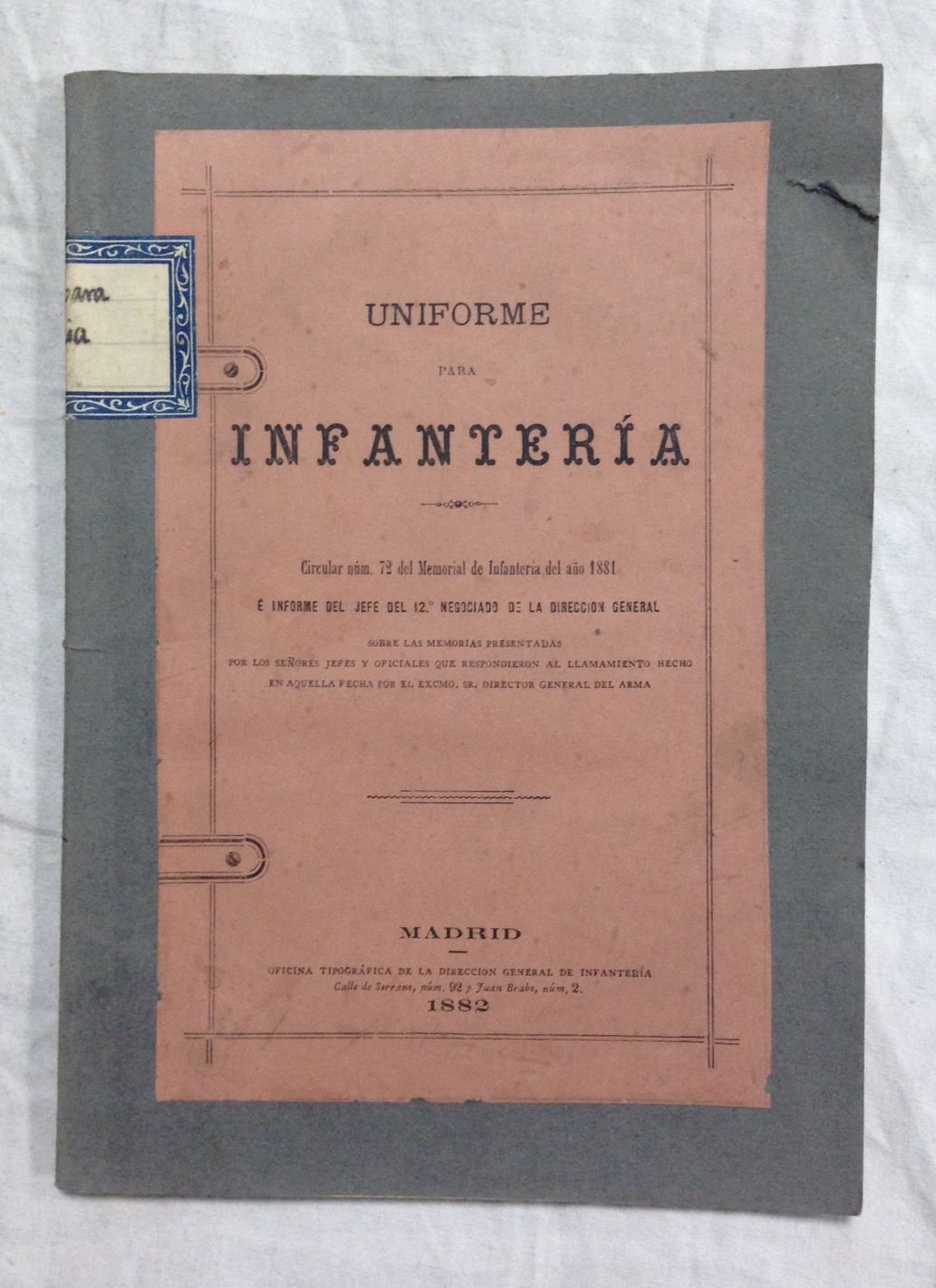Oficina Tipográfica de la Dirección General de Infantería, 1882, Madrid