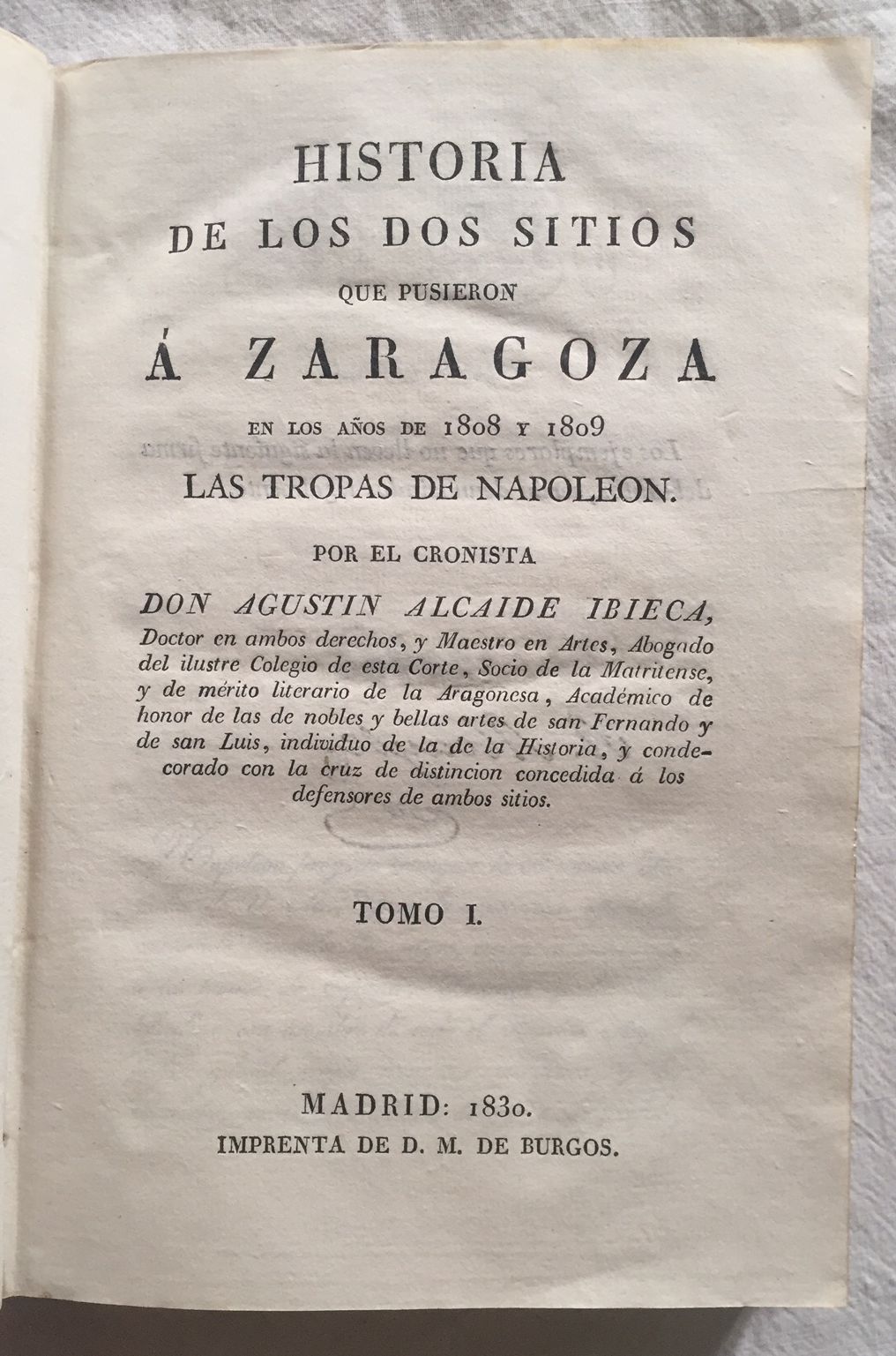 HISTORIA DE LOS DOS SITIOS QUE PUSIERON Á ZARAGOZA en los años de 1808 y 1808 las tropas de Napoleón. Tomo I